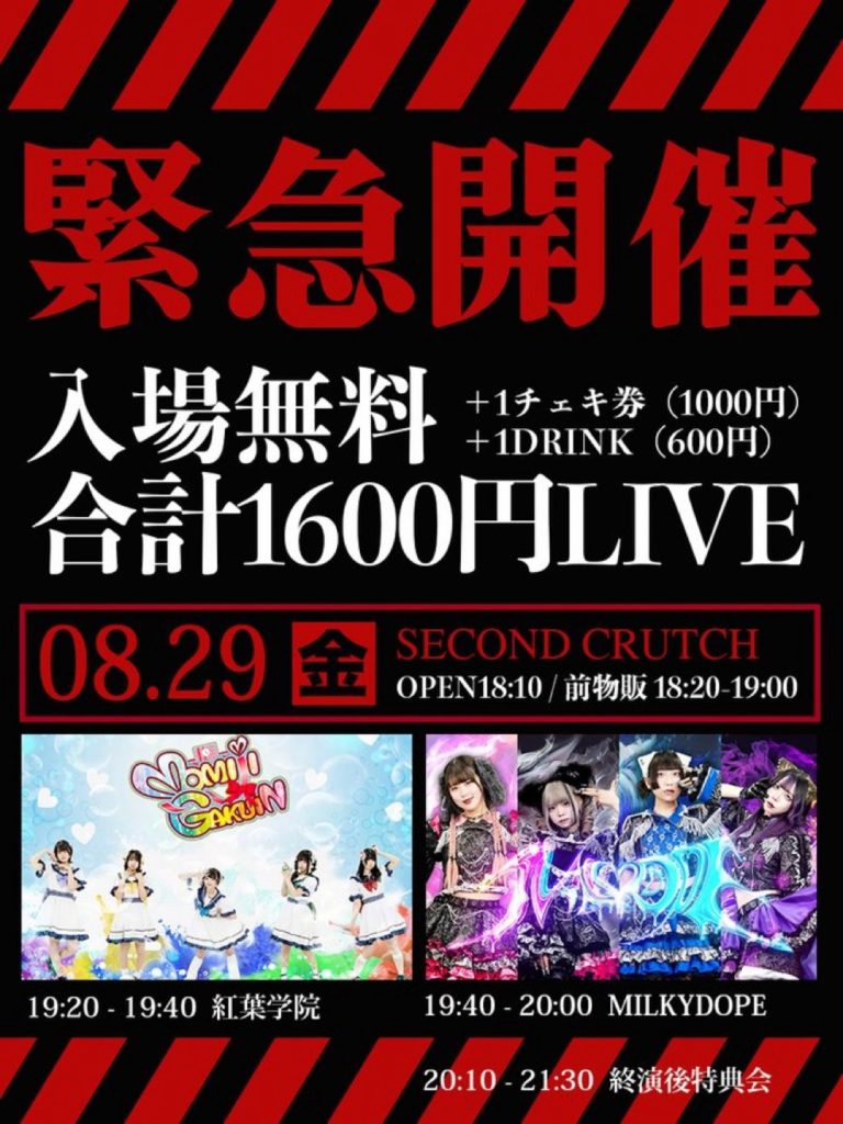 『緊急開催 入場無料+1D600円+1チェキ券1000円 合計1600円LIVE』