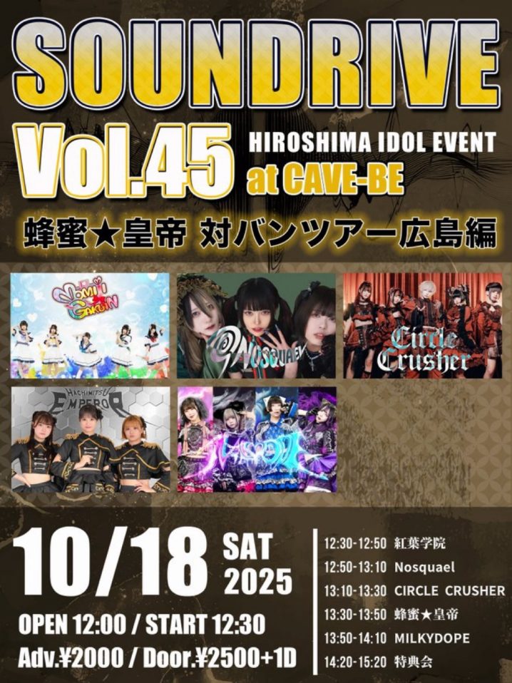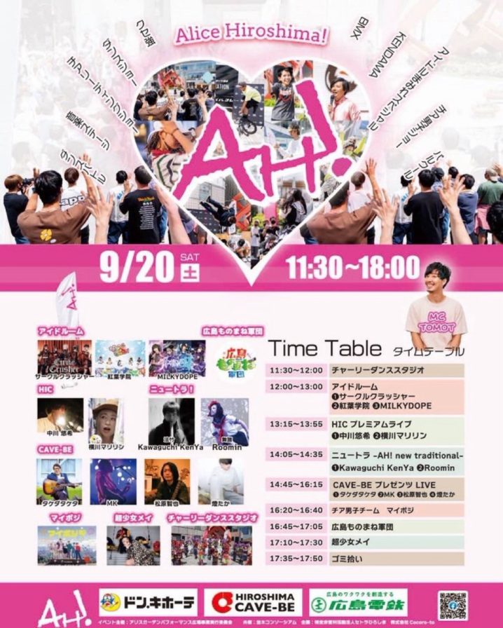 9/20(土)『AH!アイドルーム』 会場:アリスガーデン開演:11:30料金:観覧無料 アイドルームTT▼12:00-CIRCLE CRUSHER12:20-紅葉学院12:40-MILKYDOPE13:00-14:30…