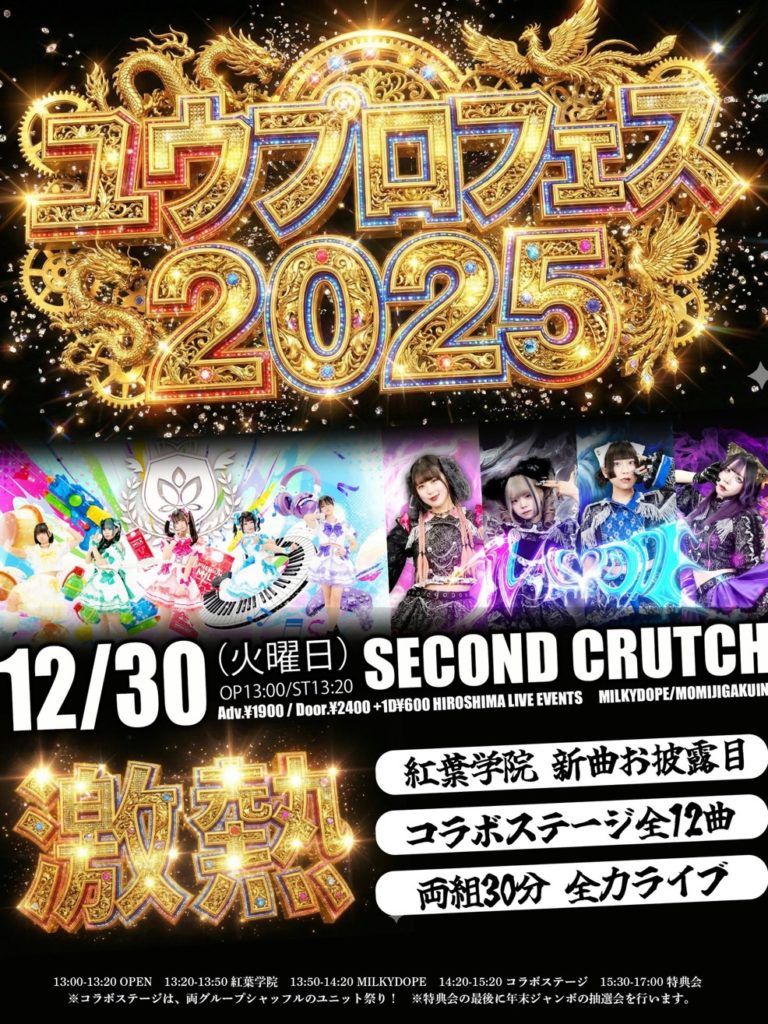2025.12.16 LIVE情報 info@you-project.jp 【12/30】『ユウプロフェス2025』 12/30(火)『ユウプロフェス2025』 会場:セカンドクラッチ時間:OP13:00/ST13:20料金:前売1900円/当日2400円+1D 予約開始 12/15 21:00tiget.net/events/451826