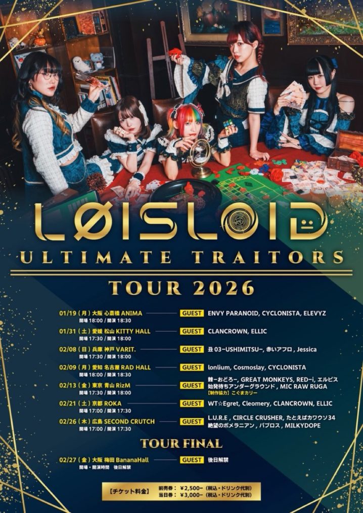 2/26(木)LØISLOID主催『ULTIMATE TRAITORS TOUR 2026 -HIROSHIMA-』 会場:セカンドクラッチ時間:OP17:00/ST17:30料金:前売2500円/当日3000円 予約開…